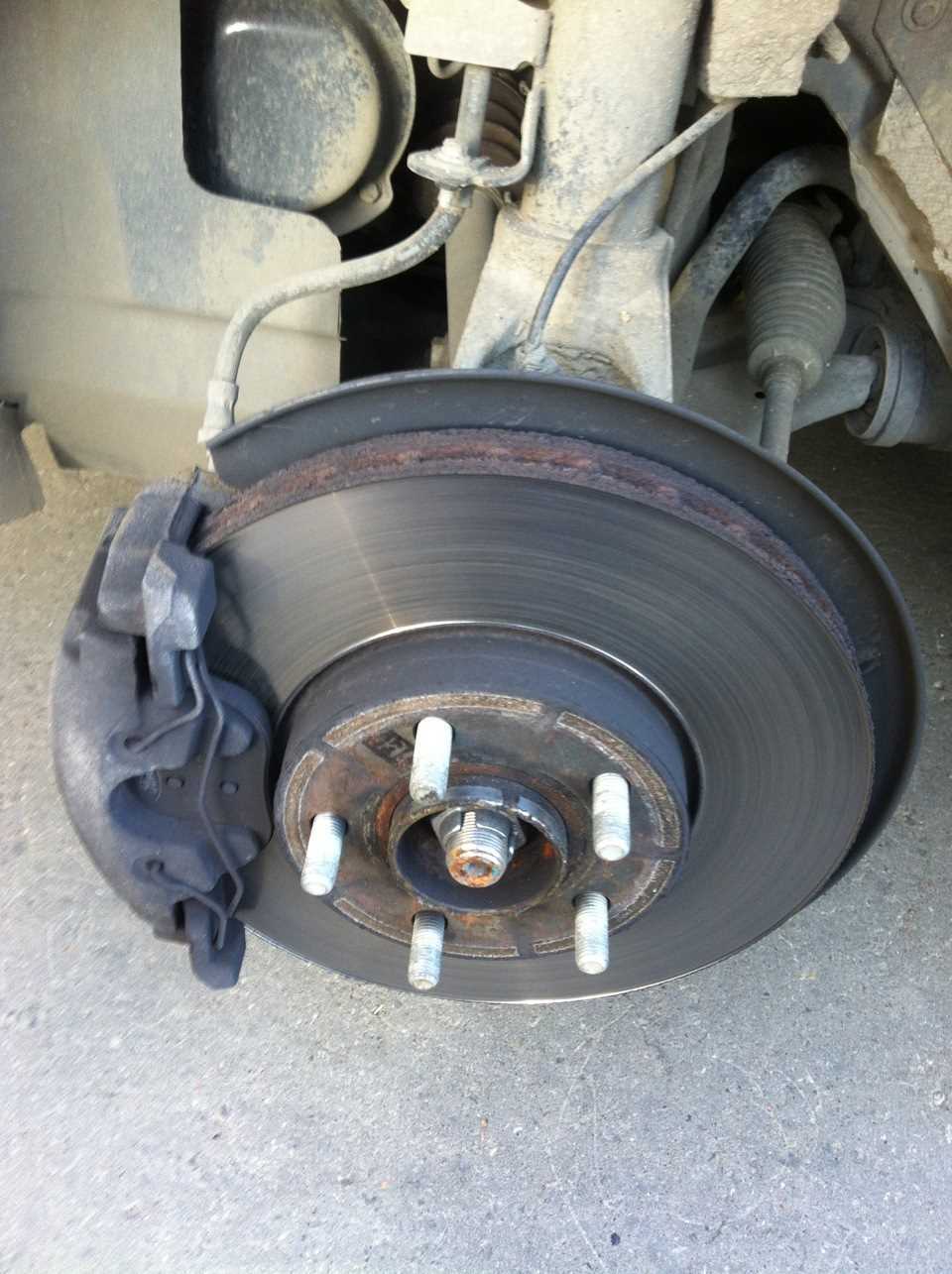 Перед началом замены тормозных колодок следует очистить тормозной диск от старых обломков колодок и старой жидкости.