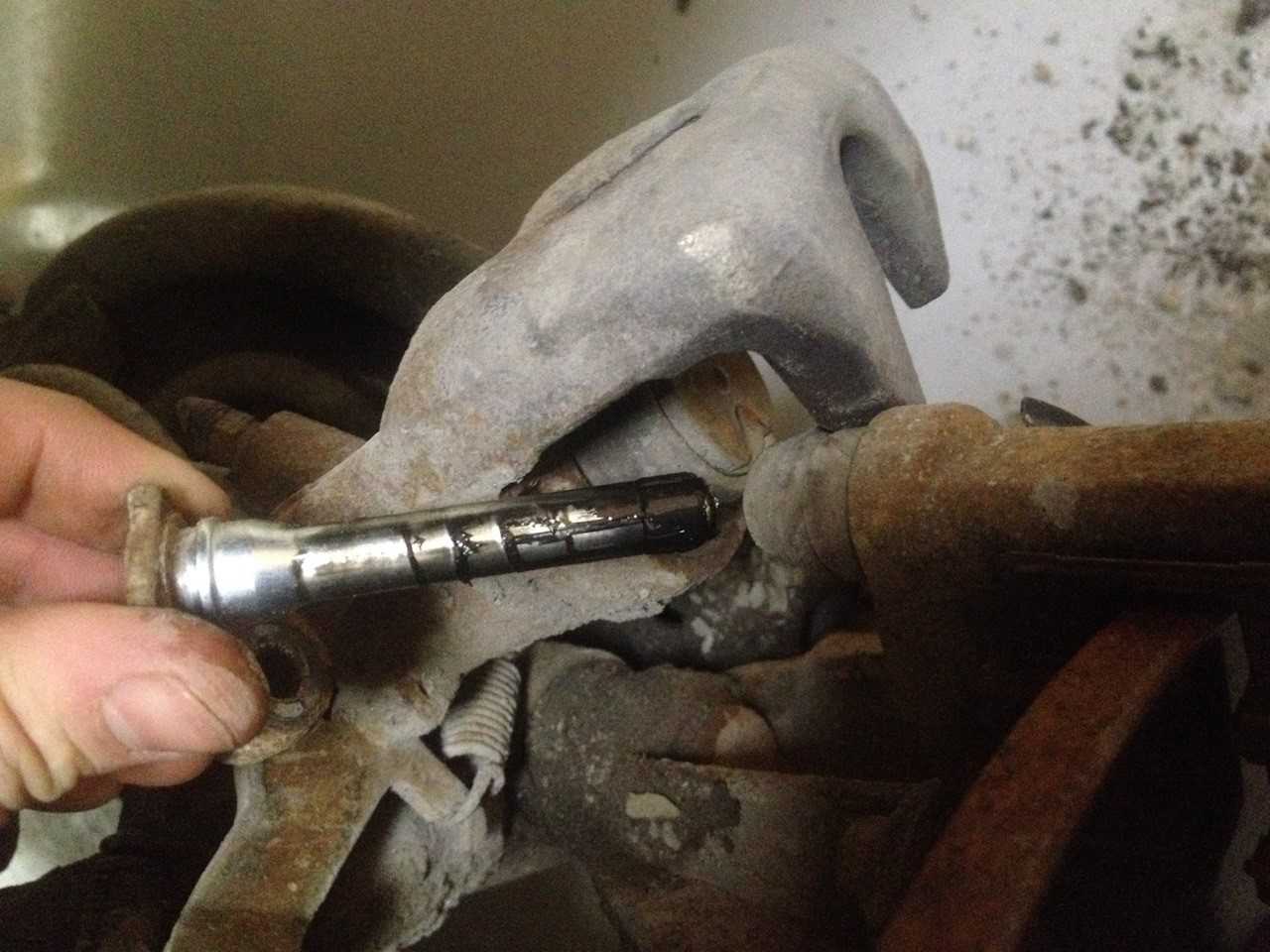 13. Очистите их от загрязнений и смажьте смазкой для тормозной системы. При наличии следов сильного износа, направляющие пальцы нужно заменить на новые.