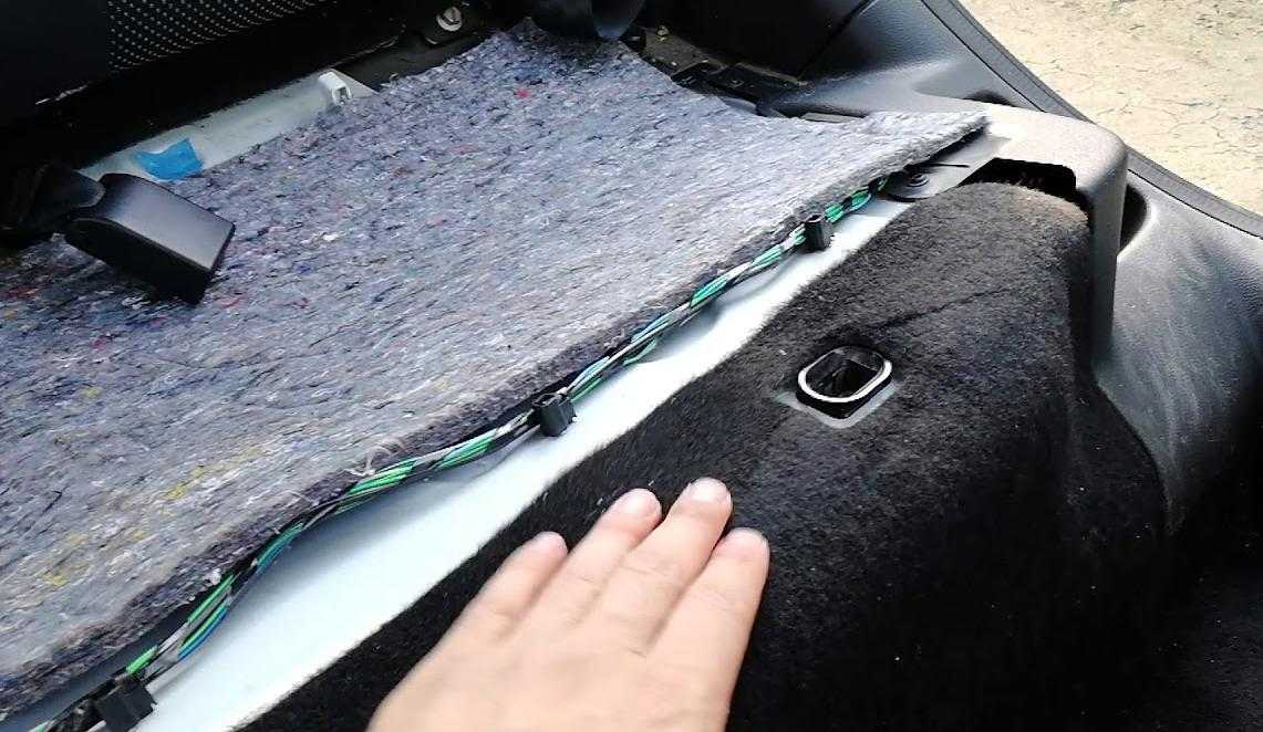 - Оклейка шумоизоляции также потребует демонтажа заднего сидения, поскольку необходимо добраться до днища автомобиля.