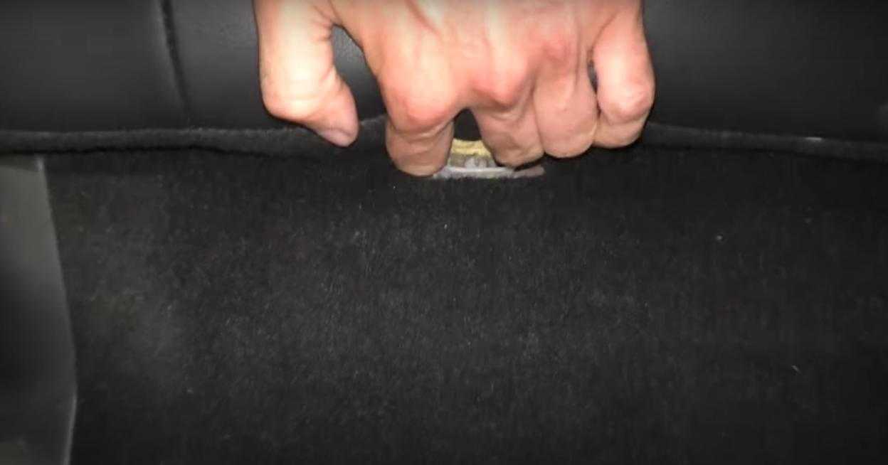 Затем нужно направить диван в сторону багажника и приподнять нижнее сидение за край, который расположен ближе к нему.