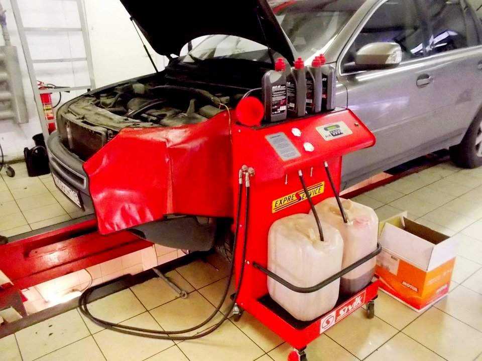Другие версии сервисного оборудования оснащены экраном и программами под каждую марку и модель авто. В них запрограммирован объем смазки и другие параметры работы, обеспечивающие максимально качественное замещение техжидкости в коробке. Стендовое вытеснение отработки считается лучшим на сегодня для обслуживания АКПП. С ним ресурс узла продлевается до 200–250 тыс. км. Процедура занимает 2–3 часа, но ее потребуется сделать раз в 50 000–60 000 км.