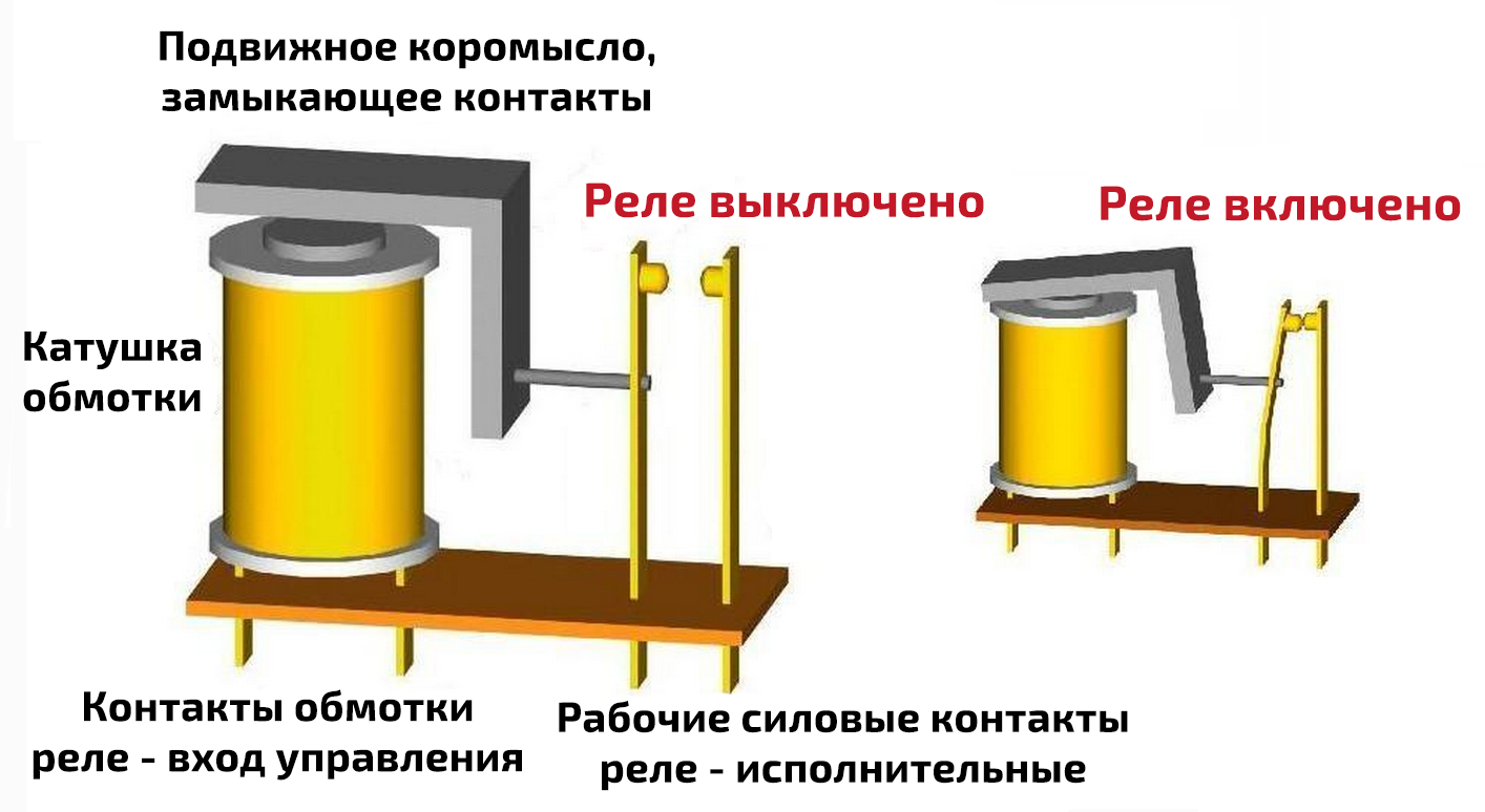 Что может случиться с реле в принципе, из-за чего оно перестанет коммутировать силовую цепь (от аккумулятора): могут обгореть контакты внутри реле из-за искрообразования, во-вторых: плохой контакт между клеммами и ножками реле и третье, что нужно будет проверить – уровень напряжения на управляющей цепи (напряжение, которое заставляет контакты реле притягиваться). На картинке выше показан принцип работы реле, на картинке ниже показаны номера контактов реле и электрическая схема.