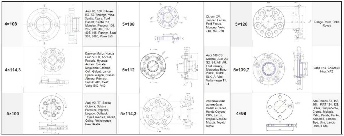 Размеров PCD не так уж и много: с десяток популярных, на европейских и азиатских машинах, и ещё несколько более редких, которые встречаются в основном на американских автомобилях.
