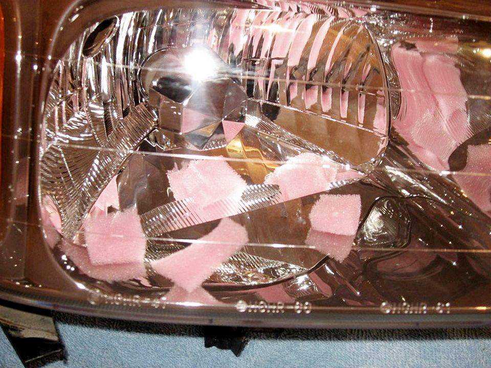 - потрясти фару в разные стороны — куски поролона начнут соприкасаться с внутренней поверхностей и вычищать грязь;