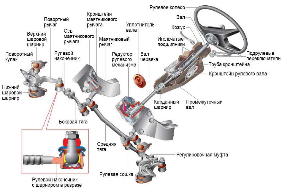 Схема устройства рулевой колонки включает в себя несколько элементов:
