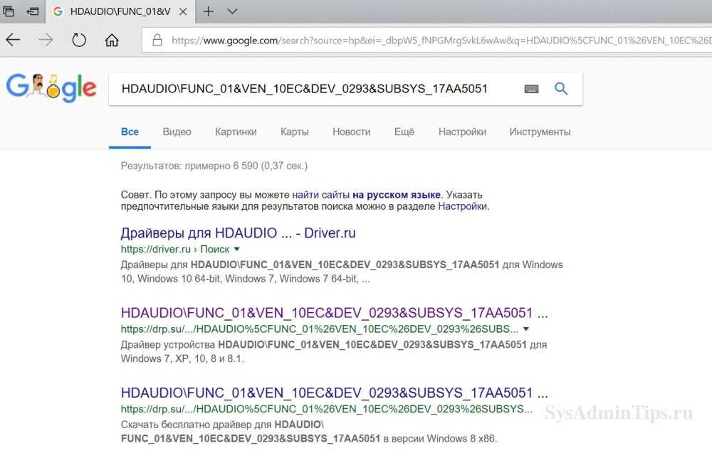 Поиск драйвера звукового устройства по ИД и переустановка