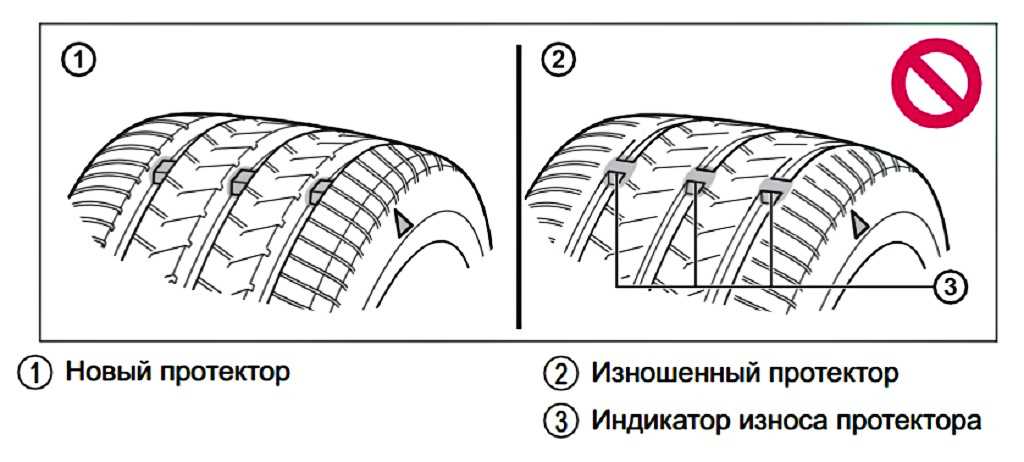 - визуально проверять индикаторы износа протекторов;