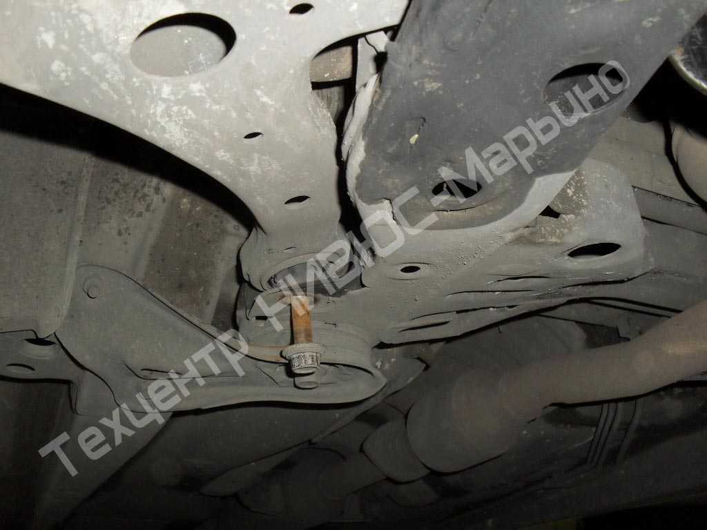 С помощью гаечного ключа отверните крепления сайлентблоков на стабилизаторе поперечной устойчивости и на элементах подвески.