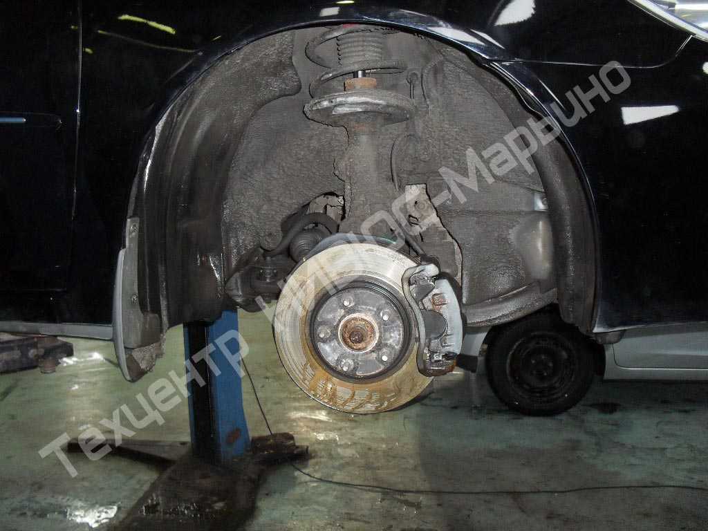 При замене снимал только колесо, больше ничего дополнительного не откручивал. Демонтаж старых сайлентов…