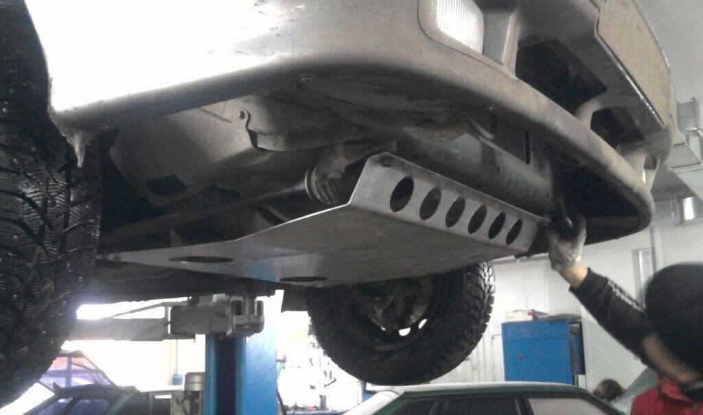 - Снимите крепления защиты двигателя – это несколько самонарезов, которые отвинчиваются при помощи ключа на 8;